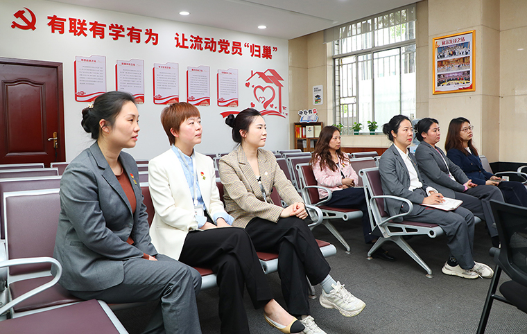 在讲解员的介绍下,与会人员参观了驿站五大功能站,充分肯定了“有联有学有为”的流动党员管理方针。安博官网第六党支部书记、常务副总裁胡均安介绍,驿站通过组织流动党员参与支部活动、学习先进典型、开展专题研讨等形式,有效增强党性修养,强化责任担当,切实提升党组织凝聚力。