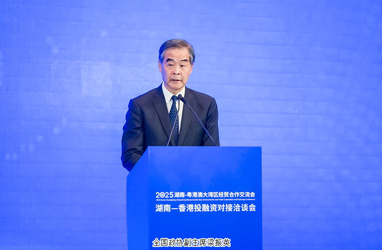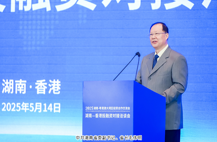 2025年5月12-16日,湖南代表团在香港举行系列经贸招商交流活动,深入贯彻习近平总书记关于湖南工作的重要讲话和指示批示精神,深度融入粤港澳大湾区。全国政协副主席梁振英出席湖南-香港投融资对接洽谈会,中共湖南省委副书记、省长毛伟明率团参加,并与香港特区政府署理行政长官陈国基、中央人民政府驻香港特别行政区联络办公室主任郑雁雄座谈。