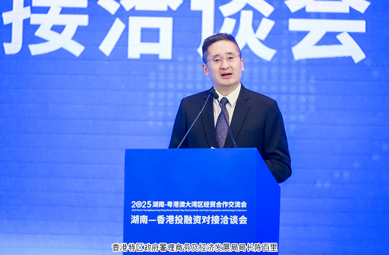 香港特区政府署理商务及经济发展局局长陈百里在致辞时表示,香港为内地企业“走出去”和国际资本“引进来”搭建桥梁,香港与湖南一直紧密合作,未来将与湖南省共同举办更多的活动,香港投资推广署会着力提供免费、专业和量身定制的一站式服务,帮助湖南企业把握大湾区的庞大机遇。