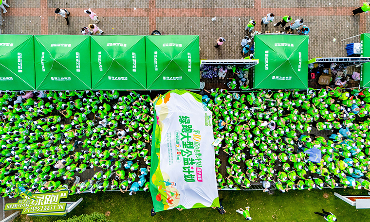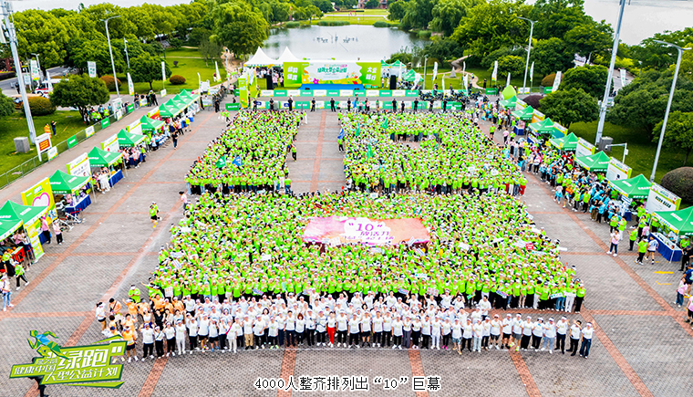 活动现场,4000多名绿跑选手在橘子洲喷泉广场有序排列出“10”字巨幕造型,伴随着欢呼声和响彻云霄的“‘10’放活力,‘益’起上场”,航拍镜头下宛如跃动的绿色脉搏,致敬着十年公益长河中的每一簇浪花。这是独属绿跑的浪漫和恢弘,激励我们涌爱向前,“益”起奔赴美好。