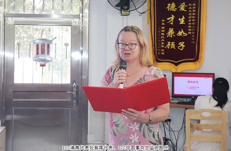 活动伊始,绿之韵幸福国际的爱心志愿者们走进长沙市晨光中心,近距离了解残障儿童及青年的日常生活与康复训练。ICC湖南代表处首席代表、ICC中国事务总监安凯乐在欢迎辞中动情表示:“感谢绿之韵的善举,我们呼吁更多社会力量关注残障群体的成长与发展,他们的成长需要大家的守护。”随后,一段记录孤残儿童及青年生活的视频让在场所有人动容——孩子们纯真的笑容、青年们努力康复的身影,无不展现着生命的坚韧与美好。更令人感动的是,几位孤残青年现场表演了精心准备的节目,用他们的方式表达对生活的热爱与感恩。