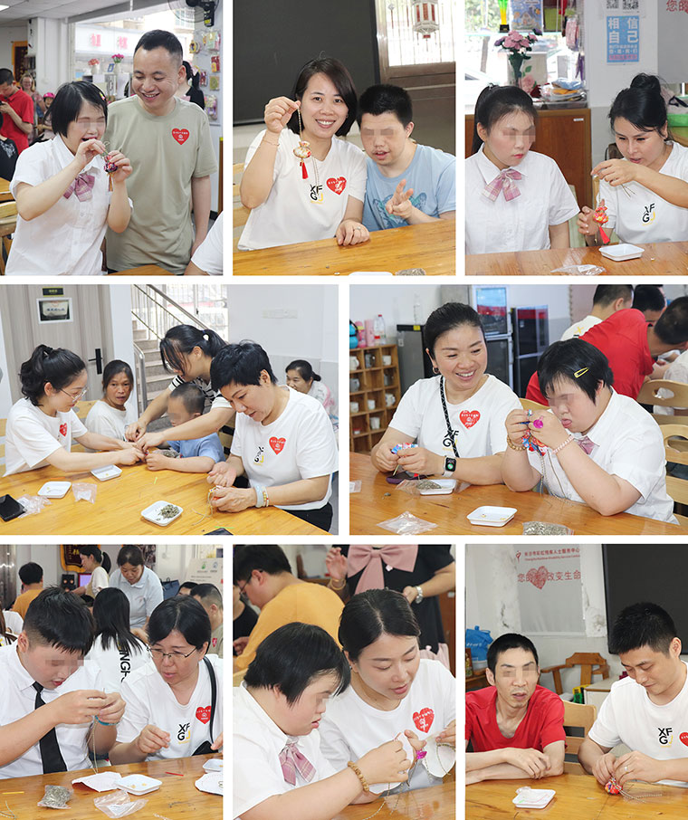 在晨光中心,有一支专门为残障青年就业提供服务的团队,老师们根据每个青年人的能力制定培养计划,在辅助性就业、支持性就业和外出就业等方面提供专业帮助,目前团队已为32名青年提供家庭评估,20余名青年在手工品制作、美食烹饪、音乐世界等方面不断挖掘自己的潜力。捐赠仪式后,绿之韵幸福国际爱心志愿者们与孩子们一起动手制作艾草包,并现场购买残障青年们手工制作品,让他们的劳动成果实现了价值的转变。在欢声笑语中,艾草的清香与温暖的情谊交织,让这个午后格外温馨。