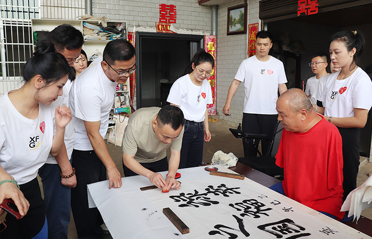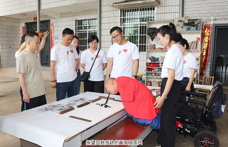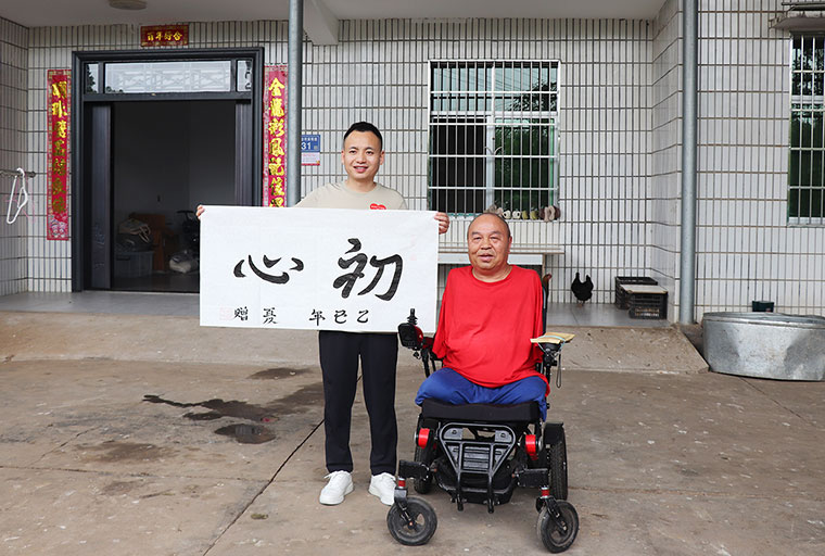 活动当天,绿之韵幸福国际爱心志愿者一行还前往四肢残缺的画家周国民及农村残疾青年家庭进行走访慰问,送去暖心物资及爱心慰问金。四肢残缺的画家周国民在夏总及爱心志愿者的帮助下挥毫泼墨,写下了《初心》《绿之韵幸福国际》的书法作品。我们相信,命运夺走了他的部分躯体,爱让他的人生不再残缺。