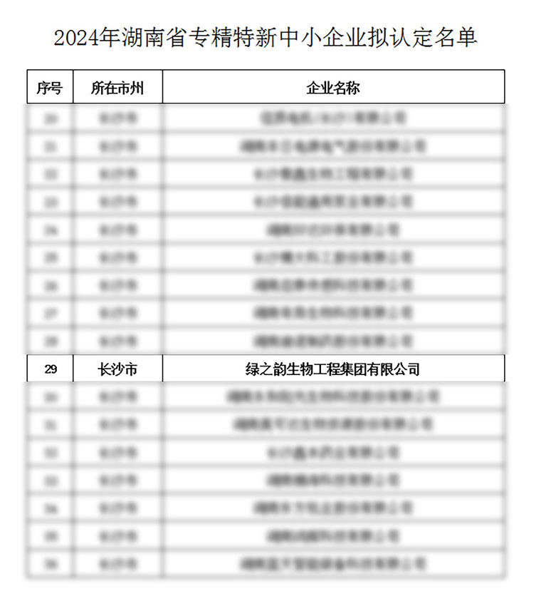 日前,根据工业和信息化部《优质中小企业梯度培育管理暂行办法》(工信部企业(2022)63号)和《湖南省工业和信息化厅关于组织开展2024年湖南省专精特新中小企业申报和复核工作的通知》要求及相关政策文件公示,绿之韵生物工程集团有限公司凭借专业化研发实力与技术创新优势,成功通过2024年湖南省专精特新中小企业复核,荣膺省级“专精特新”中小企业称号。