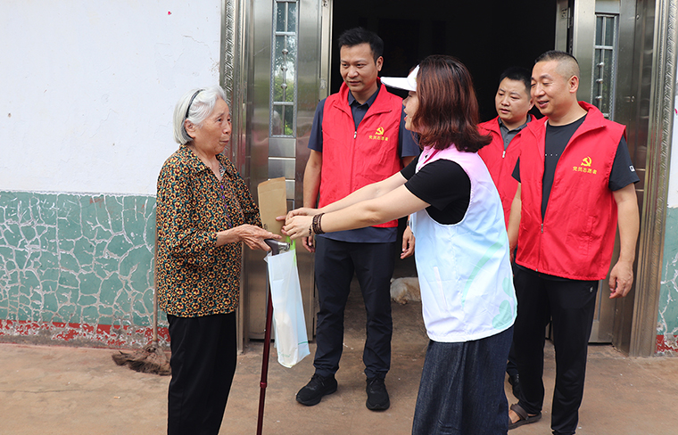 活动中,党员代表和志愿者一行深入芦塘村,详细了解困难群众的生活状况和实际需求,为他们送上绿韵兰茜日用品及慰问金等生活物资,并鼓励他们坚定信心,积极面对生活。此次慰问活动不仅传递了党组织的关爱,也展现了共建单位服务群众、奉献社会的责任担当。