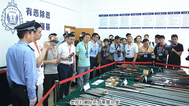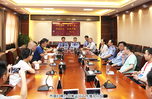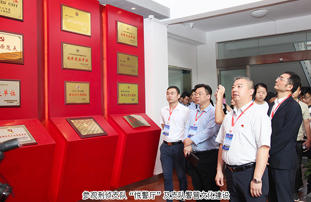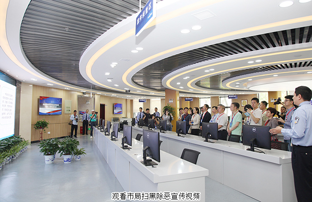 通过市局民警现场引导和解说,参观组一行依次探访了刑事技术大楼的视频侦查中心、反电诈中心、扫黑除恶研判中心,实地了解了市局视频侦查技术在侦破打击及扫黑除恶专项斗争中的作用,反电诈中心运作情况,市局扫黑办日常运行工作情况及刑侦支队“悦警厅”及支队警营文化建设,集中观看了市局扫黑除恶宣传视频和公安机关扫黑除恶专项斗争中缴获的各类涉案物品等。