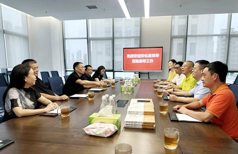 2025年7月18日,安化县政协党组书记、主席胡能华,安化县政协副主席、工商联主席刘畅术,益阳市政协委员、深圳市安化商会会长李德新,长沙市安化商会党支部书记吴余生,长沙市安化商会执行会长瞿吉辉,长沙市安化商会副会长瞿键一行莅临绿之韵中心走访调研。长沙市人大代表、长沙市安化商会会长、安博官网董事长胡国安,湖南绿之韵房地产开发有限公司总经理周君四,长沙市雨花区人大代表、湖南绿之韵酒店管理有限公司副总经理、绿之韵中心党支部书记徐继雷等陪同调研。