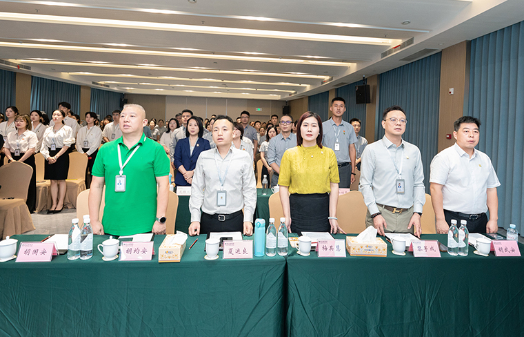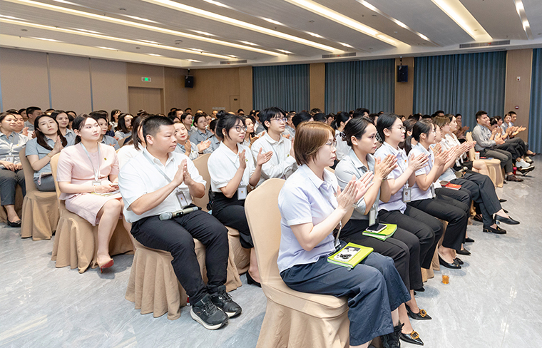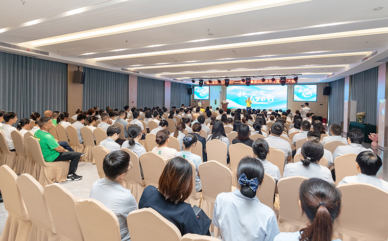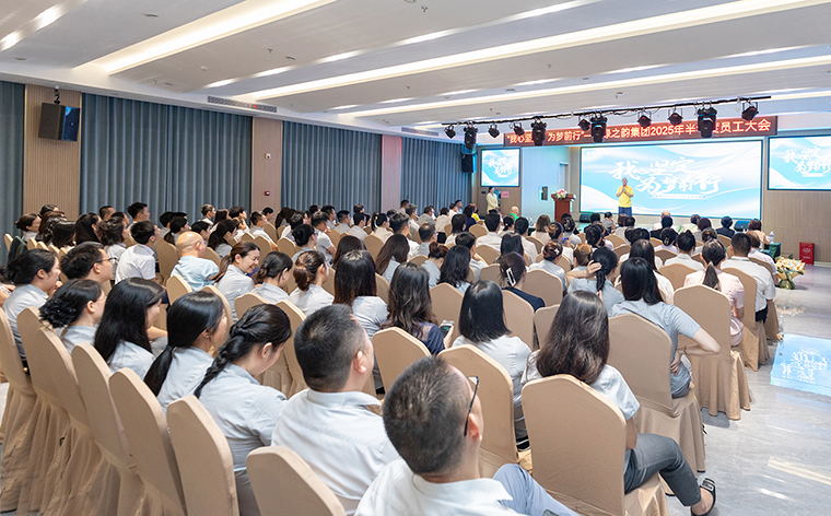 全体绿之韵人肃立宣誓,齐声宣读《绿之韵工作宣言》,彰显使命担当。新鲜血液的注入为集团带来蓬勃生机——新员工自信登台亮相,将“家的文化”与“水的精神”薪火相传。一段震撼人心的2025半年度视频回顾,更以光影镌刻奋斗足迹,点燃全场豪情。
