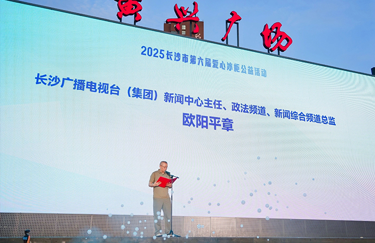 活动伊始,长沙市广播电视台(集团)新闻中心主任、政法频道、新闻综合频道总监欧阳平章代表主办方致辞。他表示,“爱心冰柜”历经六载,已成为长沙一张闪亮的公益名片,承载着全社会对高温下默默奉献劳动者的崇高敬意。涓涓细流,汇成江海;点点星光,照亮星城。他呼吁更多力量加入这场“清凉接力”,让关爱遍布城市的每个角落。