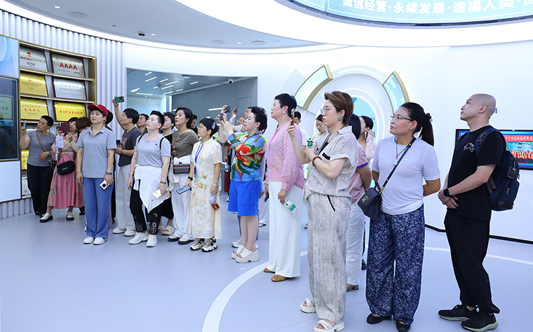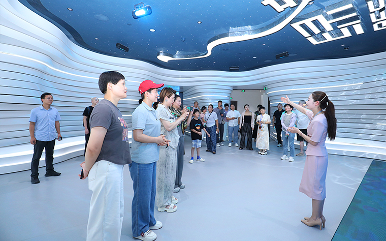 培训尾声,绿之韵碧波庭精英们满怀期待地参观了绿之韵中心园林景观和17层数智化科技展厅。展厅深度融入企业“水之道”核心理念,以“水的旅程”为叙事主线,贯穿企业初心与情怀,并巧妙融合“东哲西技”概念,彰显独特文化底蕴。展厅运用前沿数字技术打造沉浸式互动体验,构建起智慧化的新时代中医药文化展示空间。通过立体空间的多维度呈现,生动展示了集团的企业文化、发展历程、党建与公益事业、产品理念、科研实力及未来愿景,呈现了绿之韵在大健康领域的创新探索与重要成果。通过高科技展示与沉浸式体验,大家近距离感受了公司雄厚的发展实力、丰富的产品矩阵、深厚的品牌历程以及面向未来的宏伟蓝图,深受鼓舞,信心倍增,为奔赴未来的征程注入无限动能。