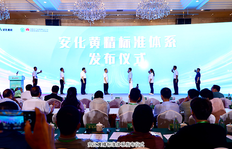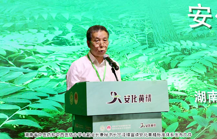 在全体与会者的见证下,湖南省中医药和中西医结合学会副会长兼秘书长宁泽璞宣读安华黄精标准体系发布文件。与会领导嘉宾共同上台正式发布安化黄精标准体系。据了解,安化黄精标准体系由湖南省中医药研究院负责牵头制定,经过反复调研、试验验证和多方专家论证,历时1年多完成。安化黄精标准体系拥有良种繁育、种植栽培、产地加工、产品质量标准4个子体系,共11项标准,覆盖繁育、种植、加工、质量保障全产业链核心环节,有效保障安化黄精从源头到产品的品质可控,筑牢产业高质量发展基础。