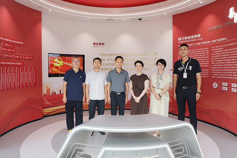 在绿之韵中心党建教育阵地,刘云书记就企业非公党建情况作了详细介绍。她表示,领导关怀彰显党建力量,领导重视彰显建党精神,领导支持彰显党建成果。绿之韵始终将非公党建工作置于发展战略高度,自2006年成立党支部,2013年获批成立党总支,2016年8月获批成立党委以来,坚持构建以集团党组织为核心,以集团工会、公益基金会为主体,注重红色基因塑造的新时代非公党建新生态,推进“三色、三有、三亮”建设,坚持“一融合、双培养、三引领、四坚持、五补给”党建工作法,实施“指导式”“责任式”“温情式”管理,形成了具有绿之韵特色的非公党建工作品牌。