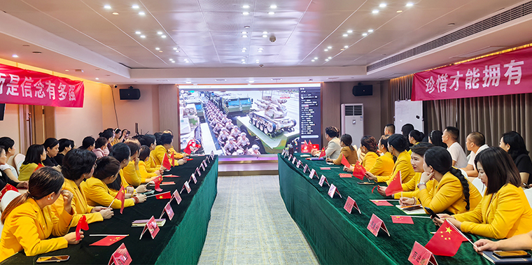 2025年9月3日上午,纪念中国人民抗日战争暨世界反法西斯战争胜利80周年阅兵式在北京天安门广场隆重举行。为深刻铭记中国人民抗日战争暨世界反法西斯战争胜利的伟大历史,弘扬爱国主义精神和革命英雄主义传统,进一步增强企业凝聚力和党员党性修养,安博官网全体职工、党员、各市场家人集中观看了这场盛大阅兵盛典,感受祖国风采,凝聚奋进力量。