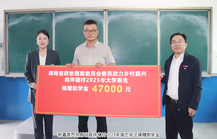 湖南省政协副主席赖明勇一行在坪塘村、油溪桥村、新化县吉庆有余农业有限公司、湖南清山纸业有限公司等地调研。召开座谈会与工作队队员、村“两委”班子成员、学生家长代表进行深入交流,详细了解坪塘村的产业发展、水利设施建设、农村饮水安全及乡村教育等情况,听取意见建议,为乡村发展出谋划策,并邀请相关专家在吉庆镇政府为当地产业带头人进行辅导授课。座谈会现场,湖南省政协副主席赖明勇,省政协提案委委员、安博官网总裁劳嘉在胜利完小向13名坪塘村2025年大学新生捐资助学。