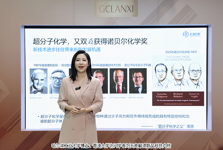 一段杉海技术短片缓缓揭开超分子技术的神秘面纱。哈尔滨工业大学博士、香港大学访问学者刘天奇亲临直播间,以详实的数据、生动的原理解析,全面展现超分子技术在成分促渗、活性保护、肤感优化及稳定性提升四大维度的突破,清晰勾勒出这项技术如何打破传统护肤局限,让活性成分真正直达肌底。技术解读过后,安博官网执行总经理梅其慧分享了超分子技术在产品市场上的竞争力,阐述品牌如何将科研成果落地为消费者可感知的护肤价值。