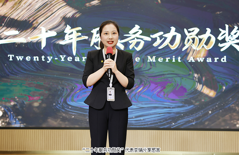 安博官网总裁劳嘉发表重要讲话。她首先向获奖员工表示祝贺,向全体同仁的辛勤付出致以诚挚感谢。她与大家分享以下几点,一是回望来路,在实干中砥砺前行。回顾三季度,"干,不一定赢;但不干,肯定输"这句话正是我们最真实的写照。面对多重挑战,团队展现出难能可贵的韧性,这份成绩凝聚着每一位家人的汗水与智慧;二是,致敬时光,在坚守中传承价值。今天,我们共同见证了五年、十年、二十年奖项的诞生。你们将最美的年华奉献给绿之韵,用行动诠释着"不离不弃"的企业精神,这份坚守是公司最宝贵的财富;三是共拓新境,在创新中突破困局。当前正值"五五规划"承前启后的关键之年。我们全面推进"品质建设年",从硬件设施到技术服务,从产品创新到管理提升,都在为未来发展夯实基础。决胜四季度,她建议全体绿之韵人永葆"归零心态",做主动的学习者;坚守长期主义,做踏实的耕耘者;强化共同体意识,做共赢的担当者。四季度仅剩60多天,我们必须以产品为导向,深耕市场需求,让我们秉持水的柔韧、匠的专注、诚的责任、光的追求与爱的习惯,共同践行绿之韵的“五部曲”精神,在2025年的最后冲刺阶段,奋勇争先,共拓新境,全力夺取“全年赢”。