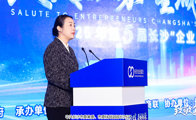 中共长沙市委常委、市人民政府常务副市长彭华松讲话。他表示,广大企业家是长沙经济发展的“顶梁柱”。全市已培育形成7大千亿级产业集群、3个国家级先进制造业集群、2个国家级中小企业特色产业集群,成为全球第二个集聚5家以上世界工程机械50强企业的城市。民营经济贡献占GDP的比重从十年前的45%跃升至65%。广大企业家是长沙创新驱动的“生力军”。全市近80%的技术合同、创新平台、科技项目源自企业,企业研发投入占全社会比重超过70%。广大企业家是长沙民生改善的“守护者”。企业家积极履行社会责任,投身脱贫攻坚、慈善公益、稳定就业等领域,民营企业吸纳就业420多万人,占全市就业总人数的80.1%,贡献了全市90%以上的新增就业。站在“十四五”收官,“十五五”开启的历史节点,他强调,希望广大企业家坚守实业、做强主业。深耕专业领域,加快推动产业智能化、绿色化、融合化发展,积极谋划国际化战略布局,让“长沙制造”金字招牌底色更亮。希望广大企业家勇于创新、引领未来。聚焦关键核心技术和“卡脖子”环节,强化研发投入和人才引育,深化与高校、科研院所协同创新,推动更多科技成果转化为现实生产力。希望广大企业家心怀家国、实干担当。立足现代企业制度,胸怀国际视野,自觉涵养家国情怀,把企业价值与社会价值、把经济效益和社会效益融合起来,彰显更大社会担当。