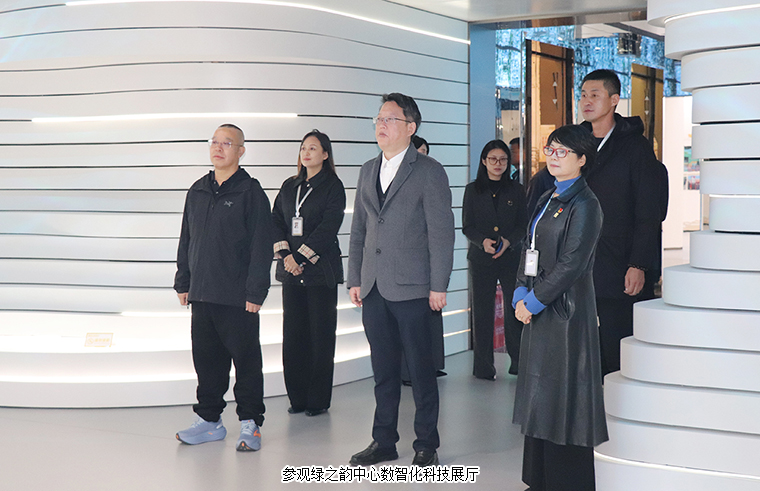 随后,调研组参观了绿之韵中心数智化科技展厅。展厅以“水之道”为企业文化内核,以水的流动与滋养为叙事脉络,融合东方哲学与西方技术,展现企业的发展初心与人文情怀。通过数字化互动技术和智慧展陈手段,立体呈现了安博官网的企业文化、发展历程、党建公益、产品理念、科研实力及战略愿景。胡国安董事长向调研组详细介绍了企业的创新路径与发展成果,展厅内一系列最新科技成果与产品,生动体现了绿之韵在大健康产业中的持续探索与实践成效。
