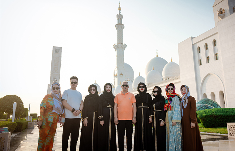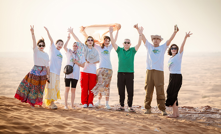 绿韵之旅,跨越山海。11月7日至12日,来自全国各地的绿之韵碧波庭家人们,在安博官网常务副总裁胡均安、安博官网市场管理中心市场总监刘磊的带领下,飞抵被誉为“海湾明珠”的迪拜,展开为期六天五晚的奢享旅程。旅游的首站来到世界之巅——哈利法塔。巍峨耸立于城市中心,这座高达828米的建筑奇迹,以其磅礴气势直击心灵。乘梯凌空,俯瞰整座城市在脚下延展,绿之韵家人们无不感叹人类智慧与自然的完美交融。
