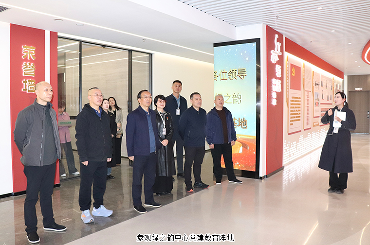 在绿之韵中心党建教育阵地,刘云书记就企业非公党建工作的实践与成效作了详细介绍。自2006年成立党支部,2013年获批成立党总支,2016年8月获批成立党委以来,绿之韵坚持构建以集团党组织为核心,以集团工会、公益基金会为主体,注重红色基因塑造的新时代非公党建新生态,推进“三色、三有、三亮”建设,坚持“一融合、双培养、三引领、四坚持、五到位、六强化”党建工作法,形成了具有绿之韵特色的非公党建工作品牌。