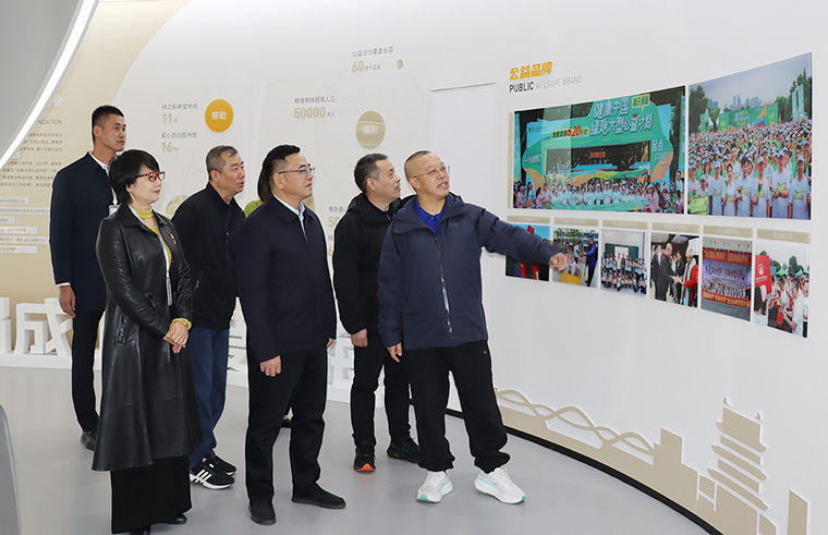 调研组一行先后参观了绿之韵中心数智化科技展厅和党建教育阵地。数智化科技展厅以企业独特的“水之道”文化为核心设计理念,巧妙运用水的流动性与滋养特质作为空间叙事主线,融合东方哲学智慧与西方先进技术,生动诠释了绿之韵的发展理念与文化传承,并通过数字化互动展示系统构建了一个集视觉、听觉、触觉于一体的沉浸式智慧体验空间。调研组在此全面了解了绿之韵的企业文化、发展历程、党建成果、公益实践、产品体系、科研创新与战略规划,胡国安董事长系统介绍了企业的发展脉络,展厅内展示的最新科研突破与创新产品系列,充分彰显了绿之韵在大健康产业的前沿布局与深厚积累。在党建教育阵地,刘云书记向调研组汇报了企业非公党建的特色成果。绿之韵党组织自2006年成立党支部后,历经多年发展,已构建起以党委为核心、工会与公益基金会协同的新格局。企业通过推进“三色、三有、三亮”工程及“指导式、责任式、温情式”管理等系列创新举措,形成了特色党建品牌,有力推动了党建与发展的深度融合。