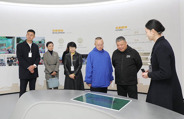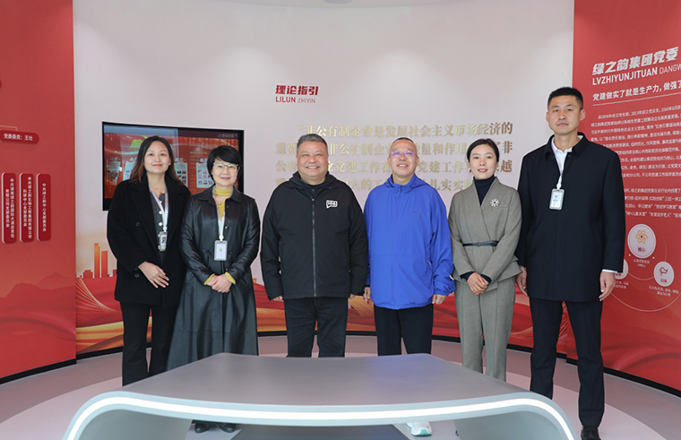 陈刚主席一行先后走进绿之韵中心数智化科技展厅、党建教育阵地与政协委员工作站。数智化科技展厅以 “水之道” 文化为核心设计理念,融合东方哲学智慧与西方先进技术,通过数字化互动系统构建起多感官沉浸式体验空间,全面展现了企业发展历程、企业文化、全链条产品体系、核心科研突破及公益实践足迹。在党建教育阵地,刘云书记详细汇报了企业非公党建成果:自2006年成立党支部以来,企业已构建起党委为核心、工会与公益基金会协同联动的党建格局,创新推行 “三色三有三亮” 工程与 “三维管理模式”,打造特色党建品牌,实现党建与企业发展同频共振。