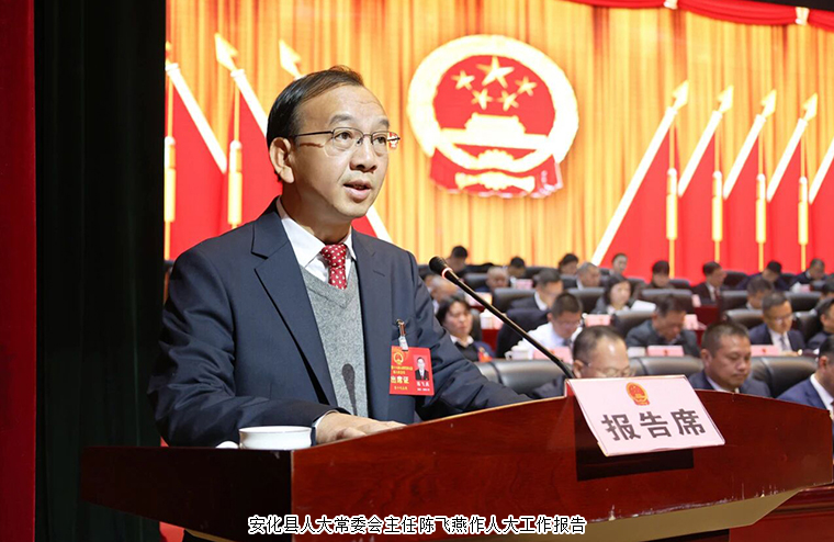 12月22日,安化县第十八届人民代表大会第六次会议在圆满完成各项议程后在安化大剧院闭幕。中共安化县委书记潘文剑在会上讲话。他表示,会议期间,各位代表以对党、对人民、对安化未来发展高度负责的政治担当,认真履行宪法和法律赋予的神圣职责,充分发扬民主,积极建言献策,共商发展大计,集中体现了全体代表的共同智慧,充分反映了全县人民的共同意愿,精准契合了安化发展的现实需要,必将进一步激励和动员全县人民,以更加坚定的信心、更加昂扬的斗志,积极投身于建设现代化新安化的火热实践。他表示,一年来,县人大及其常委会始终围绕中心、服务大局,在助推高质量发展、深化法治建设、增进民生福祉、发挥代表作用等方面,守正创新、担当作为,建设了具有安化辨识度的新时代人大工作品牌,得到了全国、省、市人大的高度评价,为全县经济社会发展和民主法治建设作出了重要贡献。对县人大及其常委会过去一年的工作,县委给予充分肯定。