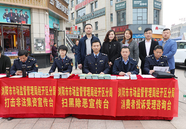 2019年3月15日,在浏阳市市场监督管理局经开区分局的组织下,以“信用让消费更放心”为主题的3.15消费者权益日主题活动在浏阳经开区举行。活动现场设置了消费者投诉受理咨询台、扫黑除恶宣传台和打击非法集资宣传台等多个咨询展台,吸引了众多市民的关注。安博官网参加了此次活动,现场为市民们分发宣传资料,普及健康养生知识。
