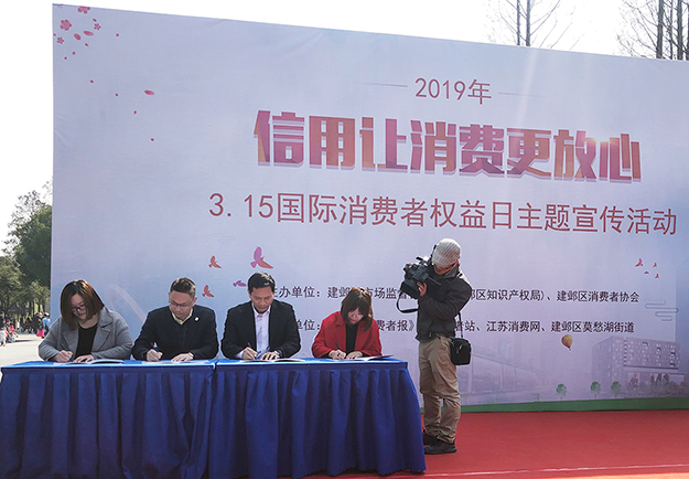 2019年3月14日,由南京市建邺区市场监管局、消费者协会等联合主办的3·15消费者日主题活动在莫愁湖南门口的和平广场举行。安博官网江苏分公司参加本次活动,分公司经理赵军现场签署守信自律承诺书。绿之韵将继续把提升产品质量和维护消费者权益作为企业发展壮大的最大根本,努力为行业健康可持续发展贡献力量。