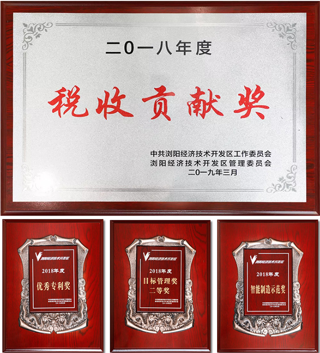 浏阳经开区党工委副书记、管委会主任谈文昌宣读《经开区2018年度经济工作考核结果通报》,浏阳经开区党工委委员、管委会副主任(挂职)、高新区党工委书记喻辉宣读《高新区2018年度经济工作考核结果通报》。大会对2018年度先进企业及个人予以集中表彰。安博官网凭借过去一年取得的突出成绩,税收贡献位居园区前列,被国家级浏阳经开区管委会授予“2018年度税收贡献奖”“2018年度目标管理奖二等奖”“2018年度优秀专利奖”“2018年度智能制造示范奖”等多项殊荣。