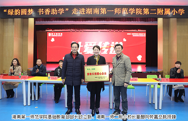 爱心助学仪式上,湖南一师二附小校长章醇在致辞中感谢了绿之韵爱心企业与爱心志愿者们对学校及孩子们的关爱与帮助。未来,学校将以饱满的热情投入工作,用优异的成绩回报爱心企业,回馈社会。湖南第一师范学院基础教育部部长欧立新表示,学校将继续坚持“以人为本、全面做人、发展个性、追求卓越”的办学思路,为国家、为社会培养出更多的栋梁之才。湖南第一师范学院资产处处长彭善琼说道,“绿韵圆梦·书香助学”活动的开展为我校教育事业的发展提供了极大的支持,营造了浓厚的社会助学氛围。