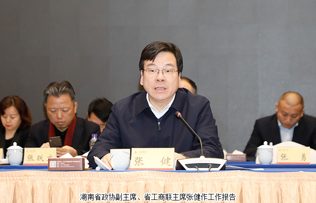 会上,湖南省政协副主席、省工商联主席张健代表执委会作工作报告。他首先从“注重政治引导,政治建会持续加强;注重调查研究,参政议政影响持续扩大;注重服务大局,助推开放崛起持续发力;注重夯实基础,自身建设持续加强”四个方面,回顾了2018年省工商联的主要工作和取得的主要成绩。张健强调,2019年是新中国成立70周年,是决胜全面建成小康社会的关键之年,省工商联的总体工作思路是:深入学习贯彻党的十九大精神,着力贯彻落实中央在民营企业座谈会上的重要讲话精神,坚持政治建会、团结立会、服务兴会、改革强会,加快推进工商联各项改革,创造一流工作机制,打造特色工作品牌,引导民营企业积极参与“三大攻坚战”,努力实现高量发展,引导民营企业家自觉做爱国敬业、守法经营、创业创新、回报社会的典范,以促进“两个健康”的优异成绩,为决胜全面建成小康社会,建设富饶美丽幸福新湖南贡献力量。