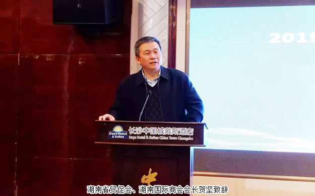 贺坚在致辞中首先对各位与会代表的到来表示热烈的欢迎,对新成立的委员会和新当选的副会长、理事表示祝贺。他说,国际商会成立于1919年,总部设在巴黎,是世界上最重要的民间国际经济组织,中国国际商会代表中国加入国际商会。湖南国际商会是中国国际商会在湖南的分支机构,是国际性的商协会组织。他指出,湖南国际商会要严格按照省民政厅有关社团组织管理规定和《湖南国际商会章程》开展商会的各项工作,参照中国贸促会管理中国国际商会的模式,积极落实“策划、执行、监督”三位一体改革;要结合省政府提出的“1+1+N”重点经贸活动和EHN(湖南企业国际化经营服务网络平台)建设为会员企业提供服务的抓手和平台;要以高标准严要求打造一支以服务会员企业为宗旨的高质量服务团队。