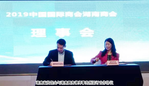 会上,省贸促会还与湖南昌言律师事务所签订了合作协议,双方将通过“互联网+商事法律服务”模式为我省中小企业服务开展合作。在商会大讲堂环节,昌言(上海)律师事务所副主任、高级合伙人蔡军祥和交通银行湖南省分行国际业务部总经理何芳围绕境外投资风险和助力企业走出去为代表们作了精彩的演讲。