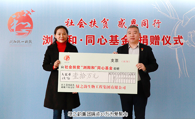 胡均安副总裁在捐赠活动现场表示,在浏阳这块红色沃土,绿之韵生根发芽、茁壮成长,受到党和政府以及各级部门的关怀与支持。“致富思源、富而思进”是绿之韵一直坚持的企业发展理念,社会扶贫“浏阳和·同心基金”的成立为我们参与社会扶贫提供了新的途径,我们将一如既往地积极承担企业社会责任,在企业健康发展的同时,努力让企业的发展成果惠及更多需要帮助的人,用行动和爱心与浏阳这座城市共同成长与发展!