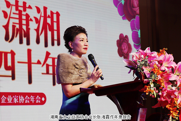 23日下午,在召开了湖南省女企业家协会会长会议后,以“凤舞潇湘 致敬40年”为主题的联欢暨颁奖晚会隆重拉开序幕,湖南省女企业家协会会长张海霞作协会年度报告,湖南省妇联党组书记、主席姜欣为晚会致辞,她表示:为实现中华民族伟大复兴的中国梦而奋斗是中国妇女运动的时代主题,11月初闭幕的中国妇女第十二次全国代表大会开启了新时代妇女事业的崭新篇章。党和政府给女性创业提供了广阔空间和难得的发展机遇,在最好的时代,最好的青春,湖南省女企业家协会的湖湘巾帼们不忘初心,在各自的行业勇立潮头,为建设富饶美丽幸福的新湖南贡献出了自己的力量。