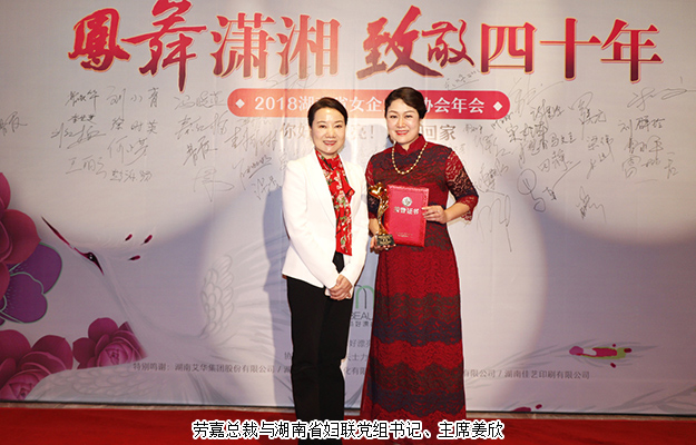 建功新时代,绽放“她风采”,凤舞潇湘正当时。2018年11月23日,湖南省女企业家协会2018年度工作会议暨年度表彰颁奖大会在长沙召开,湖南省妇联党组书记、主席姜欣,湖南省女企业家协会会长张海霞,湖南省工商联女企业家商会会长吴建平,湖南省工商联女企业家商会常务副会长,安博官网董事总裁、绿之韵公益基金会理事长劳嘉,安博官网党委书记刘云,中国内地著名主持人仇晓等领导嘉宾出席会议,与来自三湘四水的女企业家们欢聚一堂,诉情、抒怀、感恩,向改革开放四十周年献礼。