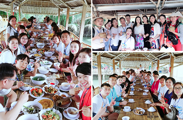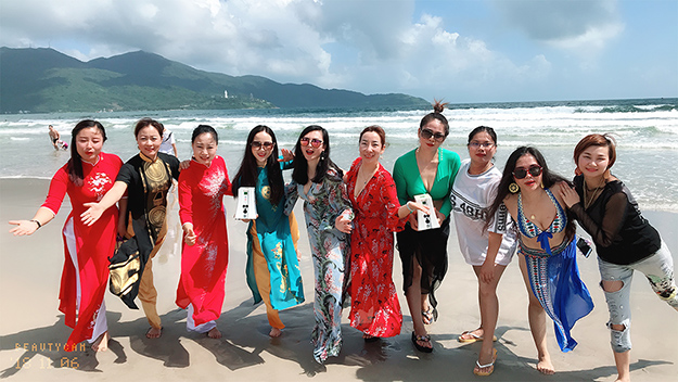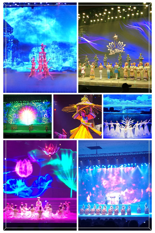 乘坐专机一抵达越南岘港,绿之韵家人们感受到了属于岘港的热辣风情。《魅力岘港秀》是岘港唯一的一台大型越南风情文艺歌舞秀,邀请了越南著名舞蹈艺人进行演出,演出中传递出越南独有的斗笠、莲花、奥黛女子、占婆等文化元素,给家人们带来了一场精彩纷呈的大型视觉盛宴,缓解了长途飞行的疲乏。