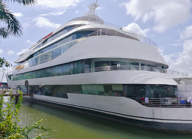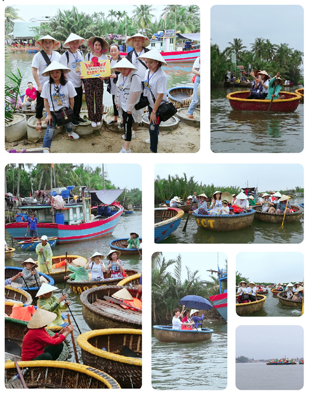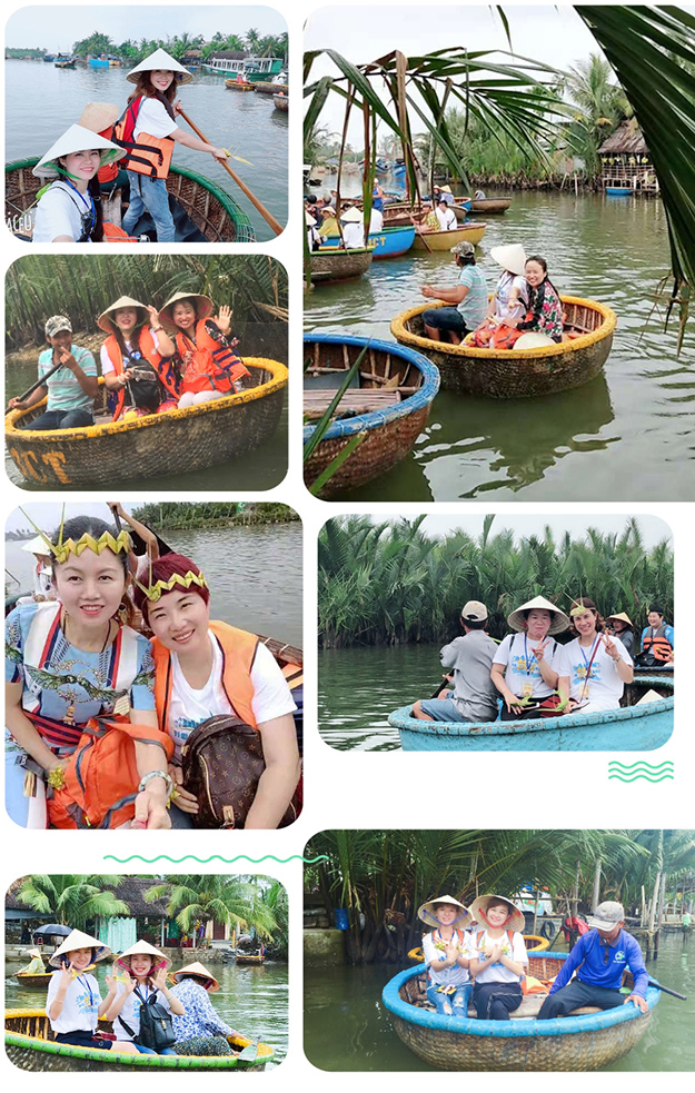 戴上一顶斗笠,坐着越南当地特有的簸箕船,像一尾游鱼穿行在水椰林间,这场景岂止是一句惬意能尽述的。只见水椰林中还建有竹桥、垂钓亭,水中还投放了鱼苗,家人们也能在此体验一把水椰林垂钓的乐趣。最为精彩刺激的,莫过于观看艄公的簸箕show了,绿之韵家人们坐在船上,艄公用船杆让簸箕船在水中高速旋转起来,船身开始上下左右的翻腾,坐在船上的家人们一个个被吓的尖叫不已,旁边观看簸箕船表演的家人们则一个个拍手叫好。家人们爽朗的笑声飘荡在迦南岛上,成为最动人的风景配乐。