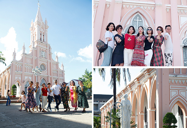 粉红教堂是岘港最大的欧式天主教堂大教堂,墙外镶嵌着中世纪风格的彩色玻璃,糖果般的粉红色外观几乎成为岘港景点的标志,每一位来到岘港的游客都会在这里留下他们的足迹。
