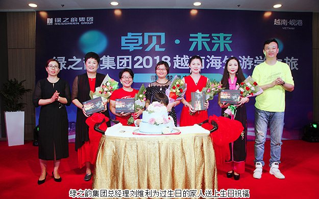 在家人们全身心地沉浸在与团友们的学习分享中时,旅行团里的工作人员们默默地为晚上盛大的绿之韵定制晚宴做着会前的准备。晚上八点,绿之韵营销精英们换上精美的服装,画上精致的妆容,优雅地步入晚宴大厅。晚宴现场,安博官网总经理刘维利为过生日的家人们送上公司精心准备的定制蛋糕、精美的礼品和诚挚的祝福,感动与喜悦的泪水久久萦绕在家人们的眼眶中。在此起彼伏的祝福声与连绵不绝的掌声中,绿之韵家人们品尝着丰盛的晚宴大餐,观看着精彩纷呈的节目表演,团员间互相分享着此次旅途的收获与感悟。现场一片欢声笑语,家人们度过了一个难忘而又美好的夜晚。