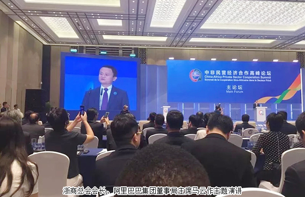 浙商总会会长、阿里巴巴集团董事局主席马云在大会上分享了关于发展数字经济的心得。他鼓励中非企业家紧密合作,今天的问题就是明天的机遇,非洲今天发展数字经济的基础比19年前的中国更有利。有问题的地方才是企业家精神可以发挥的地方,非洲也一样。企业家和企业家精神造就了今天浙江民营经济蓬勃发展的局面,他相信通过大家的共同努力,今后中国的企业家和企业家精神也会在非洲大陆上大放光彩,推动非洲国家的经济发展。