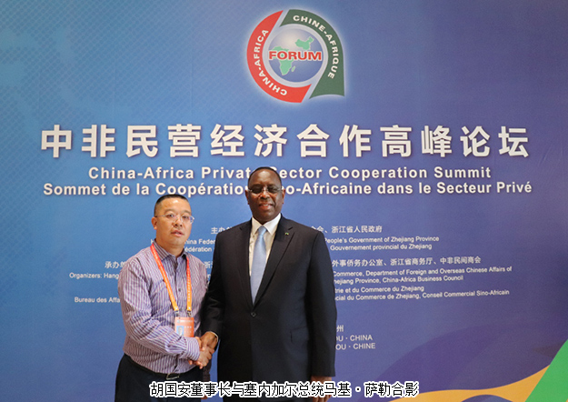 2018年9月6日,中非民营经济合作高峰论坛在杭州开幕。本届论坛由中华全国工商业联合会、浙江省人民政府主办,杭州市人民政府、浙江省工商业联合会承办。塞内加尔总统马基·萨勒,东部和南部非洲共同市场第五和第六任秘书长辛迪索·恩格温亚,埃塞俄比亚驻上海总领事穆勒·塔瑞肯·埃德雷,科特迪瓦驻广州领事馆总领事托博奎·克洛曼·弗朗索瓦;全国政协副主席、中华全国工商业联合会主席高云龙,中共浙江省委副书记、浙江省人民政府省长袁家军,中华全国工商业联合会副主席王永庆,浙商总会会长、阿里巴巴集团董事局主席马云与来自中非政府部门、民营企业、研究机构的300名代表共同参会。湖南省工商联(总商会)副主席、副会长杨广林率领湖南省工商联代表团应邀参加了此次论坛。湖南省政协委员、湖南省工商联(总商会)副会长,安博官网董事长胡国安受邀参加会议。