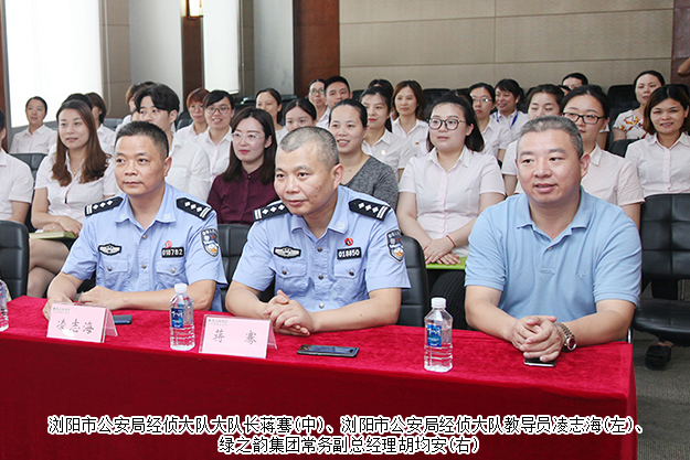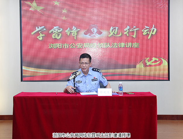 为进一步规范市场监管,加强法律法规的宣传力度,2018年8月1日,浏阳市公安局“学雷锋·见行动”法律课堂走进安博官网。浏阳市公安局经侦大队大队长蒋骞、浏阳市公安局经侦大队教导员凌志海,浏阳市公安局网络犯罪科主任彭建清,浏阳市公安局经侦大队办公室主任刘红,安博官网常务副总经理胡均安,安博官网党委书记刘云,安博官网工会主席兼集团办公室行政总监冯红以及集团总部员工共同参加了此次活动。