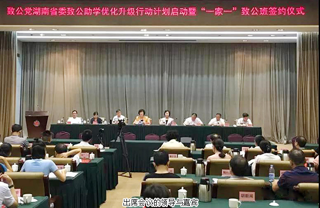 2018年7月28日,湖南致公助学优化升级行动计划启动暨“一家一”致公班签约仪式在长沙举行。全国人大环资委副主任委员、致公党中央副主席吕彩霞,中共湖南省委常委、省委统战部部长黄兰香,湖南省政协副主席、致公党湖南省委主委胡旭晟,中共湖南省委统战部副部长、省社会主义学院党组书记邓焕生,湖南省教育厅副巡视员左清,致公党湖南省委专职副主委向佐谊,致公党湖南省委秘书长田宗之等领导出席会议。致公党长沙市委社会服务处副主任、安博官网总裁助理蒋文参加会议。