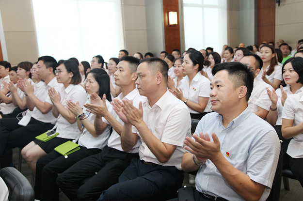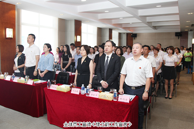 绿韵同心,携力同行。2018年7月24日,安博官网2018年上半年度员工大会成功召开。安博官网董事长胡国安、董事总裁劳嘉携集团高管及全体员工参加会议。