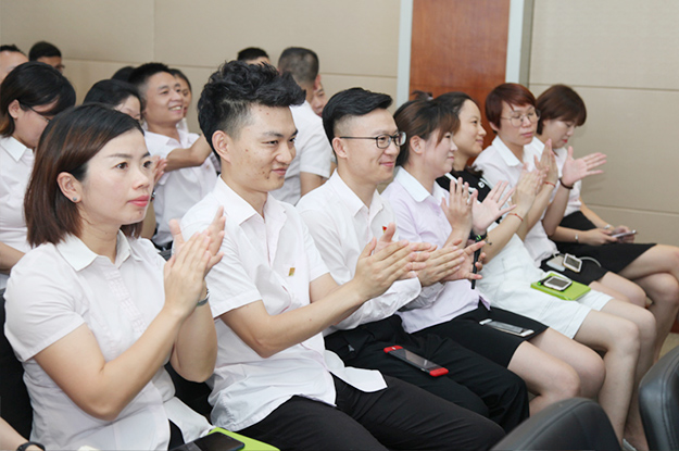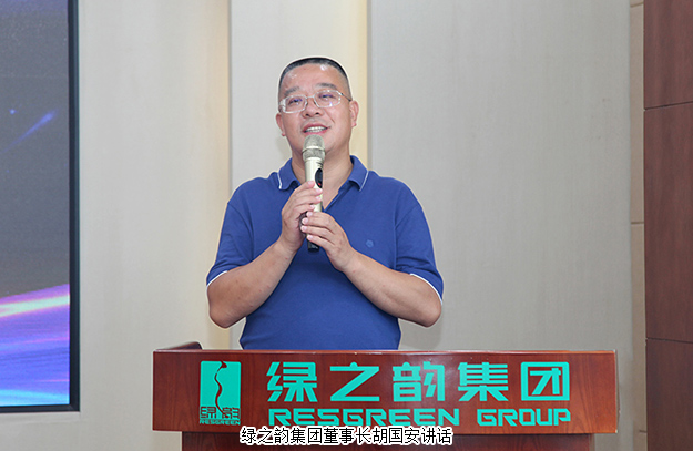 活动最后,胡国安董事长作重要讲话。他首先对本次获得优秀称号的集体和个人表示了祝贺。他在讲话中讲述了责任、产品、学习、上市和企业愿景这五个关键词对企业稳健发展的重要性。他说道,一个企业要肩负责任,要有使命担当,要以诚信为本,要做良心企业和受人尊敬的企业,他向大家反复重申了公司面向市场的“三个不改变”原则,并代表集团董事会向所有肩负重任、勇于担责的绿之韵同事致以了崇高的敬意。在谈到公司的产品时,他强调公司必须掌握核心科技,必须研发具有核心竞争力的拳头产品,要坚持以产品为导向,深化产学研合作,升级现有产品并开发出独一无二的高含金量的“拳头”产品。结合自己的深圳、香港学习经历,他勉励全体员工要把学习当做工作和生活的一部分,打造学习型企业和部门,员工只有不断学习才能胜任岗位,不断取得进步和成长。同时,他以小米公司成功登陆香港交易所为例,向在座员工简述了湖南、长沙鼓励民营企业融资上市的利好政策、香港交易所"同股不同权"等利好消息,并向大家郑重承诺,绿之韵计划在未来五年打造3—5家上市公司,让所有员工与绿之韵家人共享事业发展成果。胡国安董事长进一步表示,上市不是我们的目标,上市只是万里长征的第一步,我们上市是为了更好地奋斗。十五年时间足够证明,绿之韵人是一群敢打敢冲、不断创造奇迹的团队。只要全体员工凝心聚力,咬定目标,定能从成功走向成功,从辉煌走向辉煌!最后,他对本次获得优秀称号的集体和个人再次表示祝贺,希望全体绿之韵人同心协力,更进一步,继续为"中国梦,绿之韵梦"不懈奋斗!
