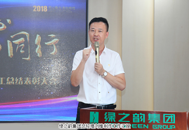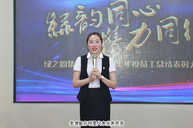 会议在全体职员整齐背诵《绿之韵工作宣言》的诵读声中拉开序幕。会上,上半年新入职的员工上台做自我介绍,并献上精心准备的节目表演,他们作为新鲜血液,进一步增强了公司的创造与创新能力。本次会议以“绿韵同心·携力同行”为主题,安博官网总理刘维利就上半年市场管理及服务情况作总结汇报。