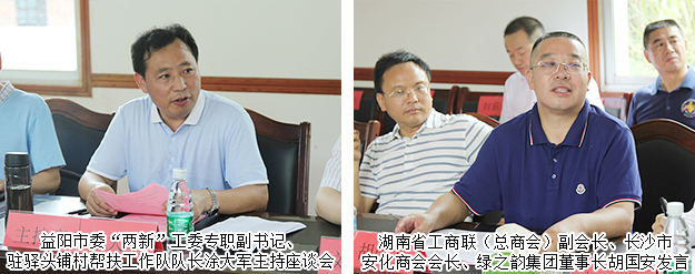 安化县是国家扶贫开发工作重点县和武陵山片区区域发展与扶贫攻坚试点县。共有建档立卡贫困村130个,贫困户40448户150777人,2014年—2017年脱贫86464人(其中2017年脱贫10258户39963人)。目前,未脱贫人口18603户64313人,贫困发生率7.1%。调研期间,胡国安董事长陪同益阳市委常委、组织部长何俊峰,长沙市政协副主席、市工商联主席彭继球一行深入安化县高明乡驿头铺村实地调研,听取驻村帮扶工作队汇报、安排落实脱贫攻坚工作、慰问贫困五保户、召开产业扶贫专题座谈会、组织签订两地村企对接帮扶框架协议、开展“光彩同心·绿之韵村民活动广场”“同心书屋”爱心捐建活动。