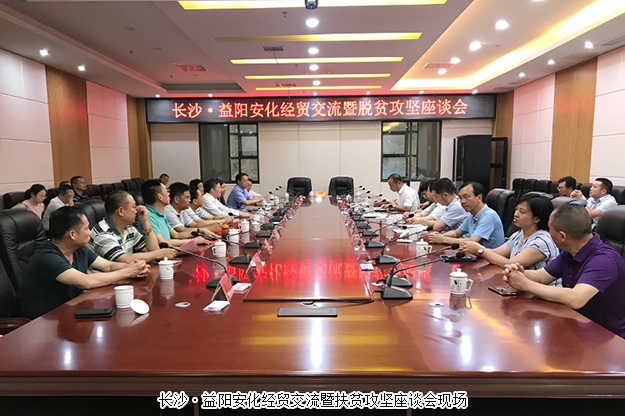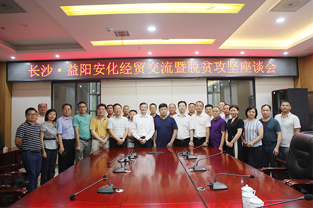 2018年7月4—5日,中共益阳市委常委、组织部长何俊峰,长沙市政协副主席、市工商联主席彭继球,益阳市工商联主席刘方军,长沙市工商联副主席刘立红,湖南省工商联(总商会)副会长、长沙市安化商会会长、安博官网董事长胡国安以及省会民营企业家代表一行赴湖南安化开展产业扶贫调研工作。中共安化县委副书记王新宇,中共安化县委常委、组织部长陈飞燕,安化县人民政府副县长谭罗垠,安化县政协副主席、县工商联主席李艳云等陪同调研。
